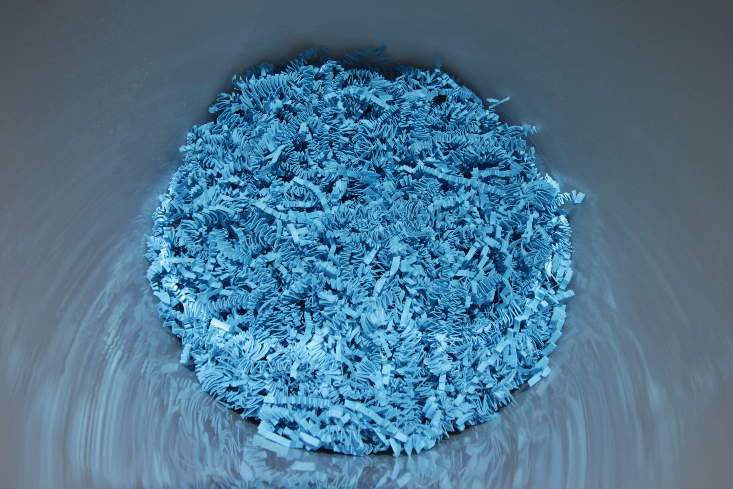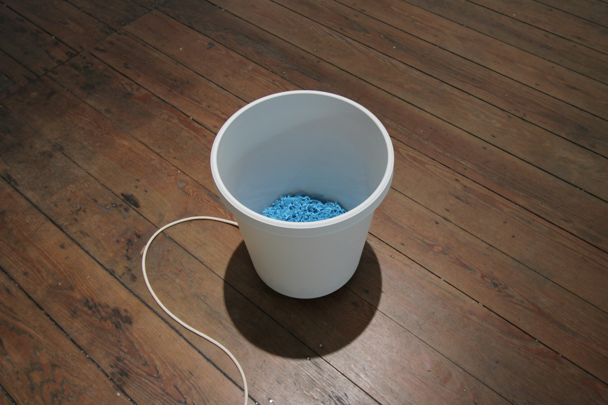 Meine Beschäftigung mit den Resonanzeigenschaften und Symbolgehalten verschiedener Hohlkörper fortsetzend, ist „Useful Volume (blue)“ der erste Teil einer Serie, die sich den klanggestalterischen und assoziativen Potenzialen von industriell gefertigten Wertstoffbehältern und verschiedenen Verpackungs-, Polsterungs- und Schutzmaterialien widmet. Ein 18 Liter fassender, mit dem Blauen Engel zertifizierter Abfalleimer der Firma Helit, Modell The Green German, ausgestattet mit einem Körperschallwandler, spielt in Dauerschleife eine zweiteilige, achtminütige Komposition, die auf Aufnahmen einer präparierten Bontempi-Orgel als Materialbasis beruht.
