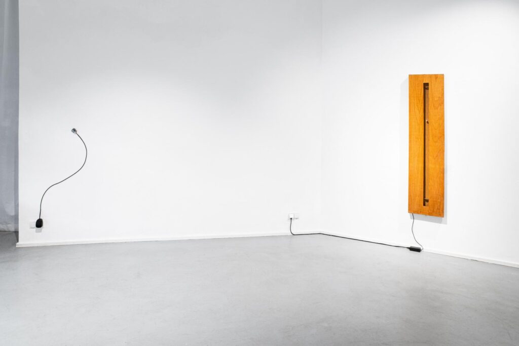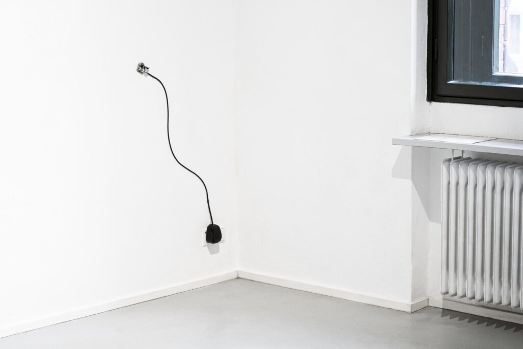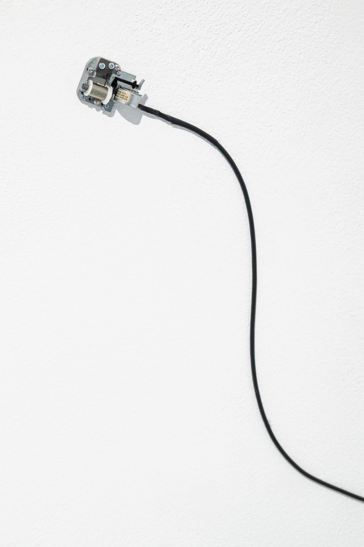 In der Arbeit E-Spieluhren werden umkomponierte und motorbetrieben Spieluhren direkt an der Wand der Galerie befestigt. Der hier entstehende Körperschall (durch Beton, Rigips, Holz, etc.) ist ortsspezifisch. Von einer leisen, filigranen und floral anmutenden Wandarbeit ausgehend wird der Raum akustisch eingenommen.