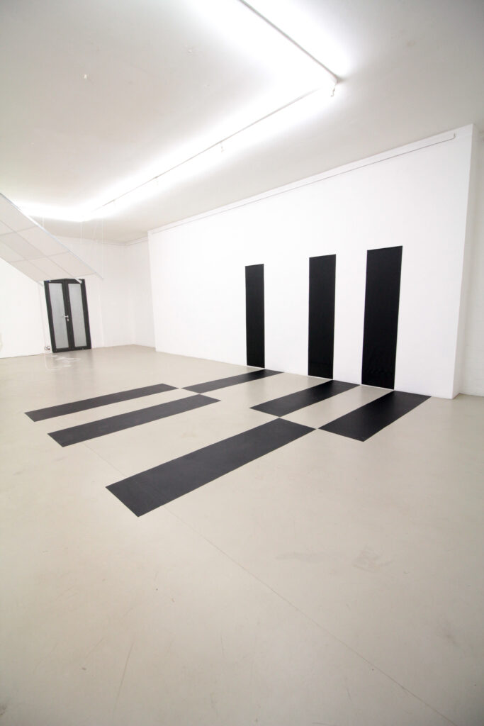 Die Arbeit „MIDI-Chords. Progression #1“ beschäftigt sich mit der in DAWs (Digital Audio Workstation) geläufigen grafischen Darstellung und Schreibweise von Musik. Dieser eigentlich ausschließlich digitale Visualisierung von Musik wird mit dieser Arbeit in einen analogen räumlichen Kontext gebracht, und damit seiner eigentlich digitalen Umgebung entzogen.