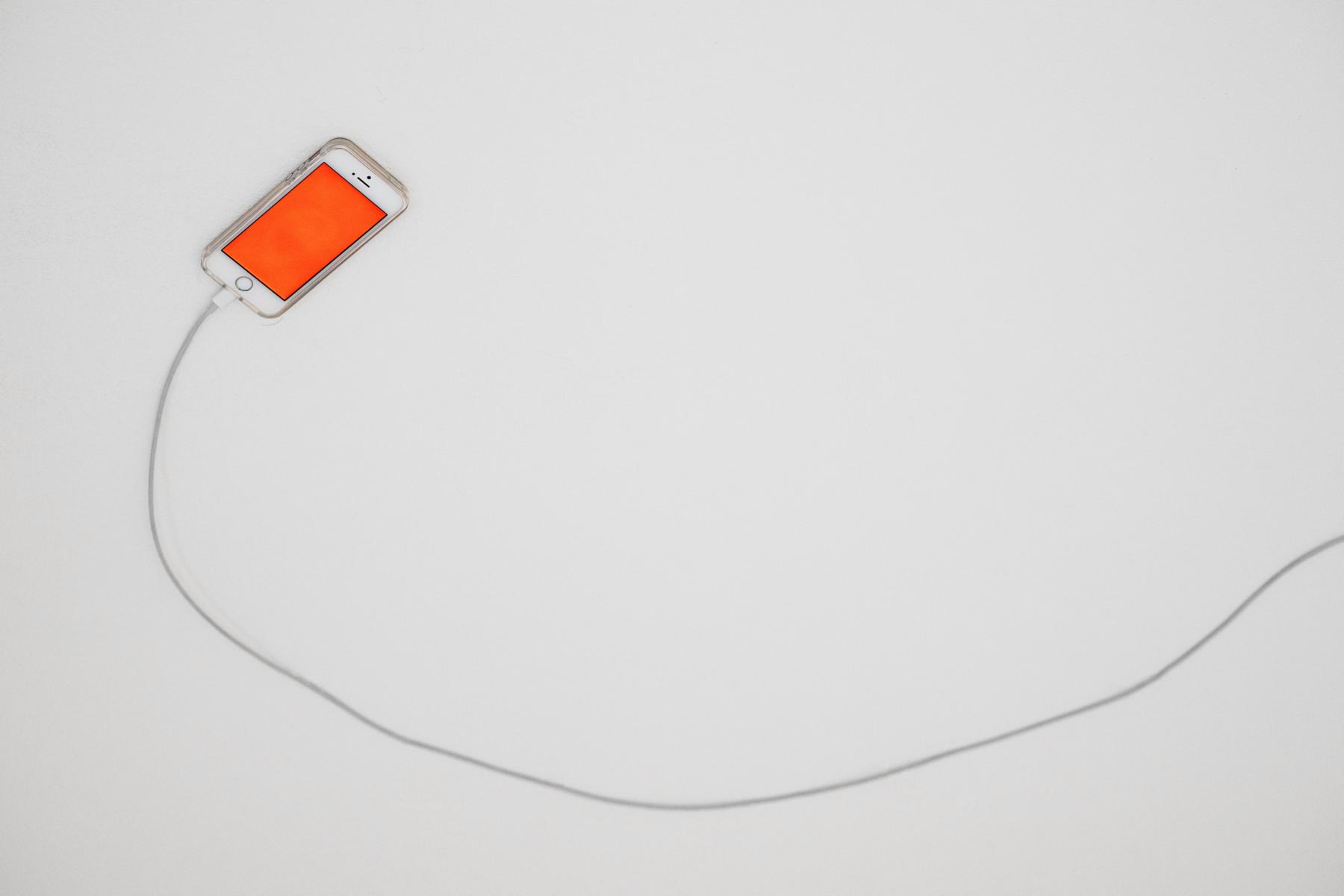 Die pulsierenden Vibrationen eines iPhones sind im Raum zu hören. Niemand geht ran. An Decke hängt das Handy, als wäre der Raum auf den Kopf gestellt. Sein alarmroter Screen erzählt von einer außergewöhnlichen Dringlichkeit.