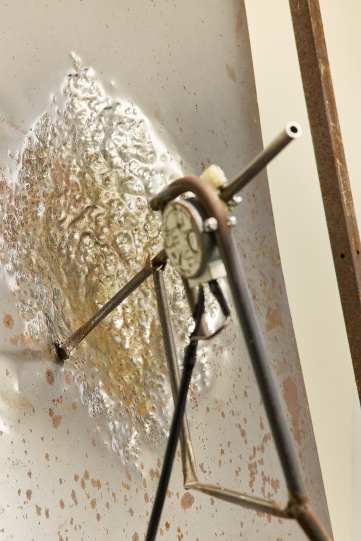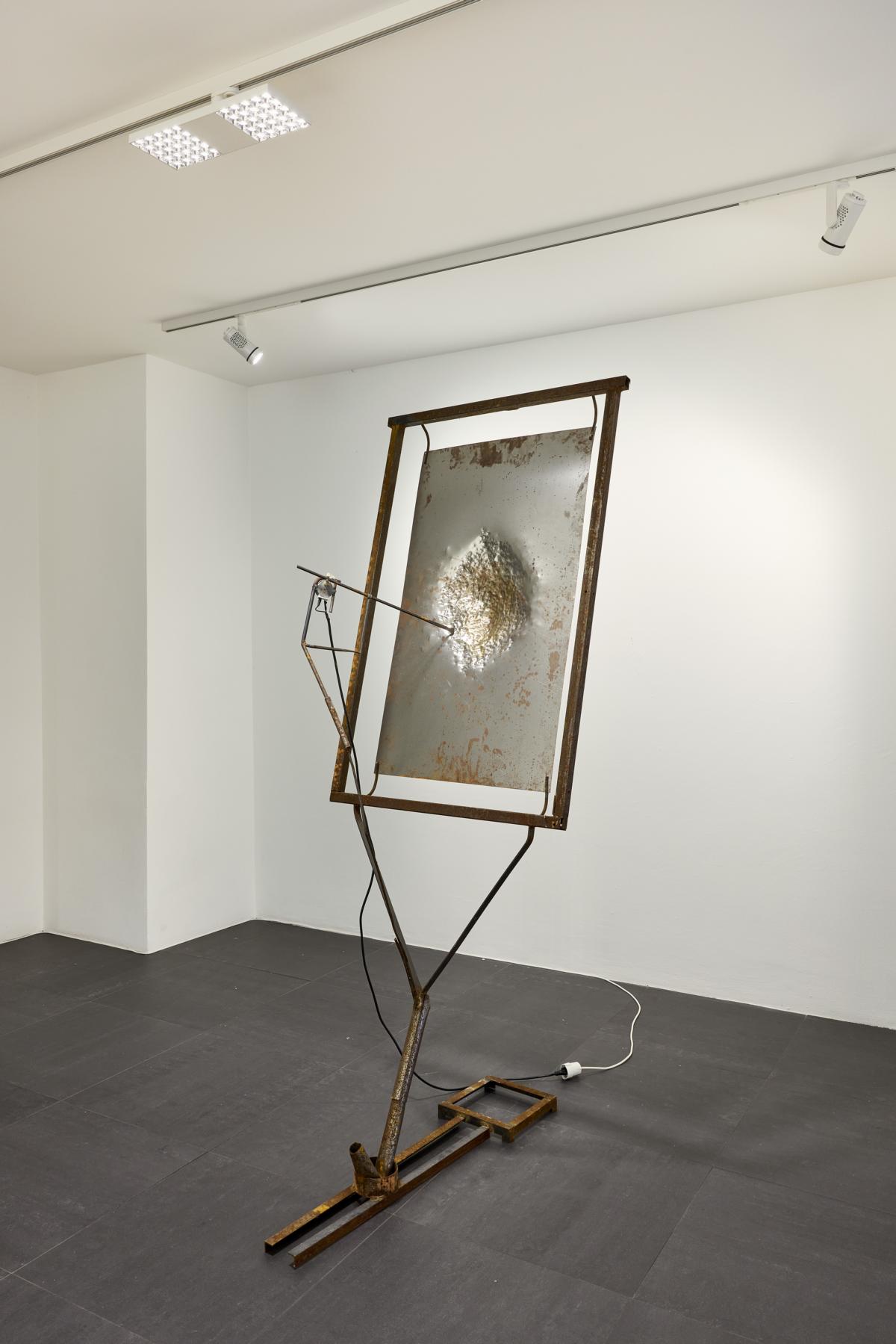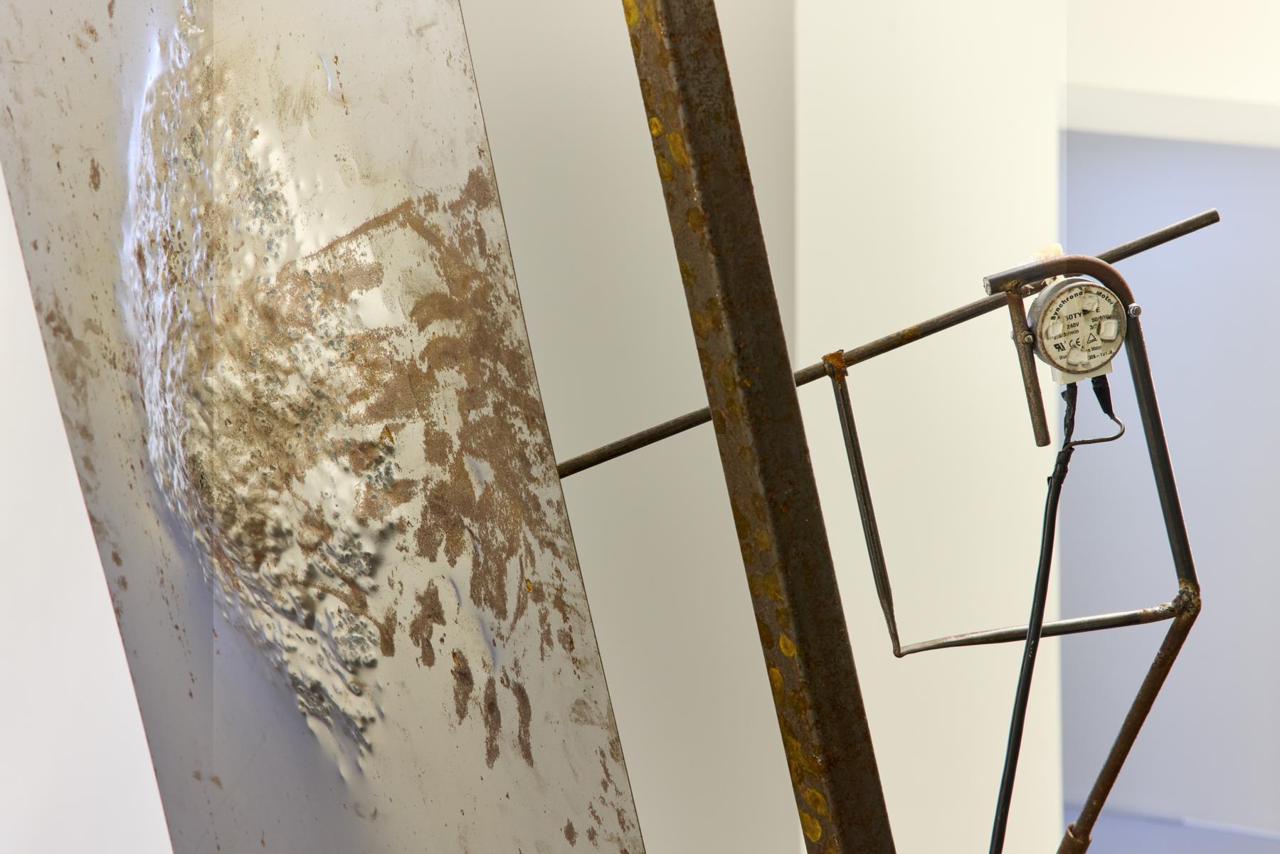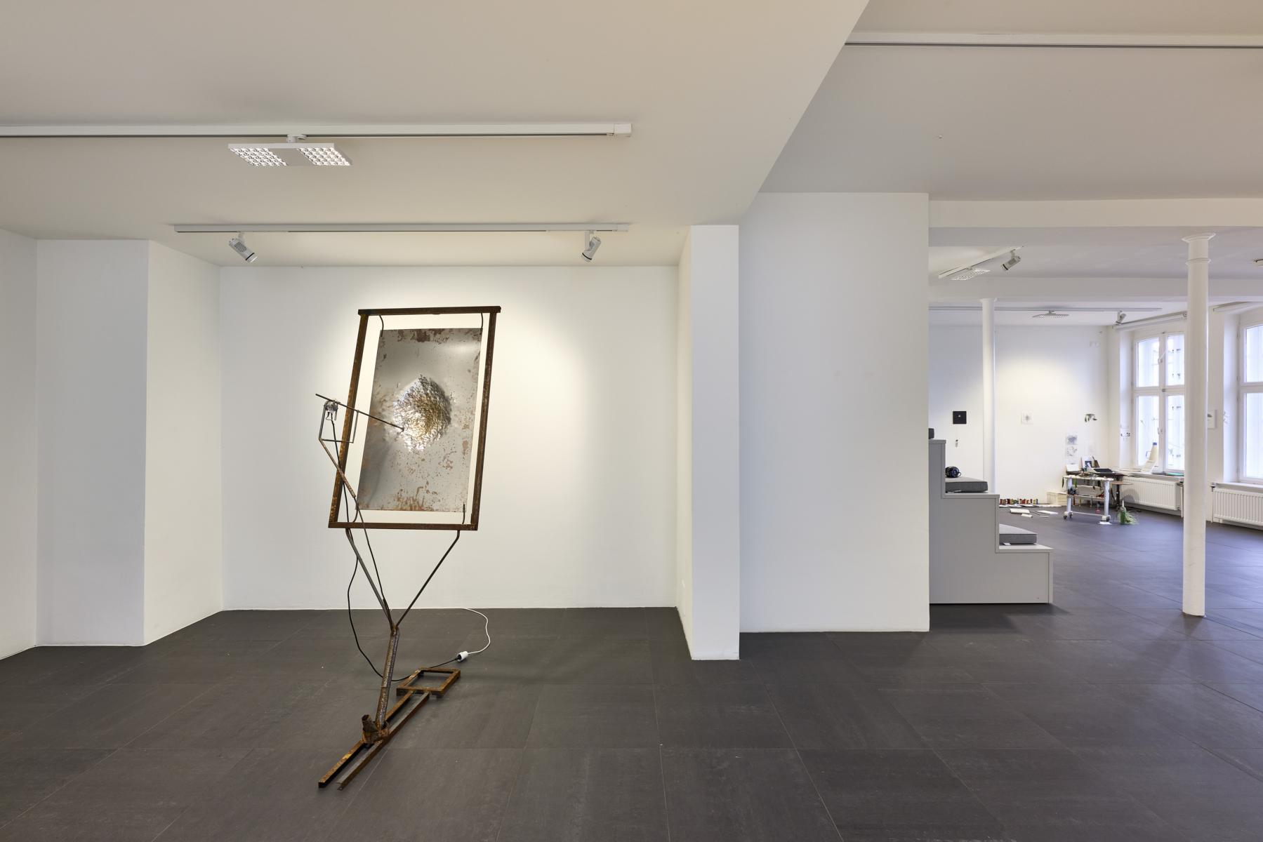 Marvin Fassmann arbeitet in seinen kinetischen und bildhauerischen Skulpturen mit den Resonanzen unterschiedlicher Materialien. Dabei übersetzt er visuelle Strukturen in etwas hörbares, indem er bspw. mit einer von einem Motor angetriebenen Metallstange Töne erzeugt. Wie ein „Tastinstrument“ fährt oder kratzt dieser Fühler über eine bearbeitete Metallplatte, um den Klangkosmos des Materials und seiner Oberfläche auszuloten.