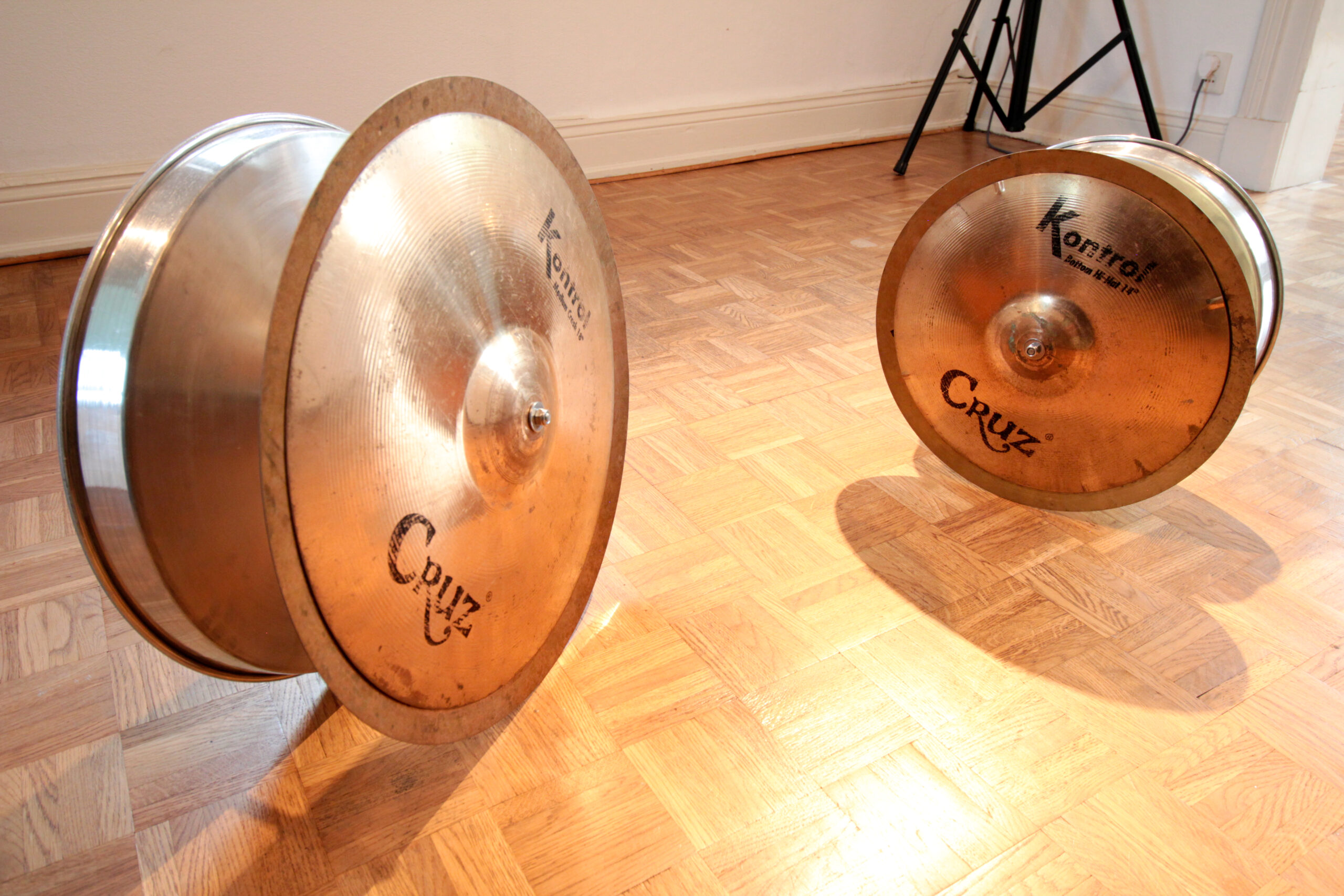 „coin-cidence“ ist eine kinetische Klangskulptur, die aus zwei motorisch rollenden Becken besteht und unkontrolliert ihren Weg sucht. Ständig nach links und rechts rollend, vorwärts und dann rückwärts. Die Becken rollen herum, stoßen gegen Wände, Ecken und aneinander. Dabei stoßen die Becken-Roboter auf die Begrenzungen und Besonderheiten des Innenraums. Eine spielerische Klangintervention lässt die Reszipenten verweilen, um ähnlich wie bei einem Roboterkampf auf den Ausgang der Konfrontation zu warten.