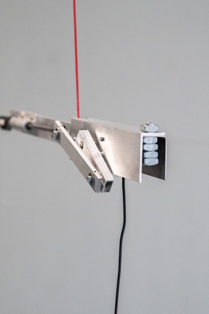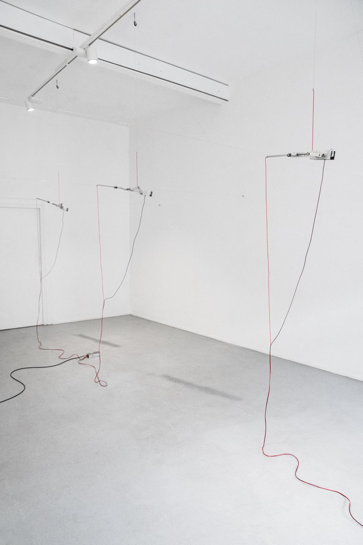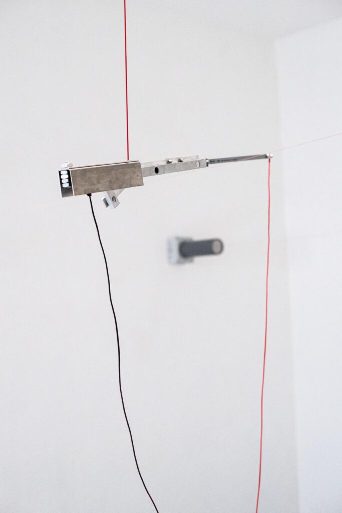 „harm“ ist eine selbstzerstörerische kinetische Klanginstallation, die aus vier elektromechanischen Sägen besteht, die langsam ihre eigene Energieversorgung unterbrechen. Inspiriert durch das Sprichwort „den Ast absägen, auf dem man sitzt“ hängt das selbstgebaute mechanische System an seinem eigenen „Faden“. Durch die Berührung des Kupferdrahtes ermöglichen die einzelnen Sägen den Stromfluss zu ihrem eigenen System und schleifen gleichzeitig nach und nach ihre Energiequelle ab. Die kontinuierliche Bewegung und die Geräusche der arbeitenden Sägen sorgen rund um die Uhr für eine Komposition.
