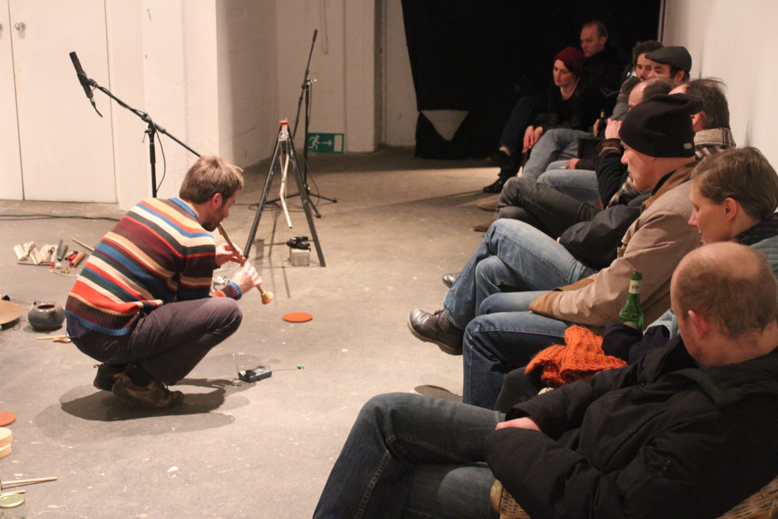 Peter Strickmann (*1983) ist ein in Berlin lebender Klangkünstler und Performer, der ortsspezifische Installationen, szenische Konzerte und grafische Gedichte realisiert. Seine performativen Arbeiten mit selbstgebauten Instrumenten bewegen sich zwischen Miniatur-Objekttheater, musikalischer Improvisation und kollektiver Hörübung. Zudem pflegt er ein stetig wachsendes Schnarcharchiv, war Veranstalter diverser Konzertreihen und studierte bis 2013 Audiovisuelle Kunst bei Christina Kubisch sowie Public Art bei Georg Winter an der HBKsaar in Saarbrücken.