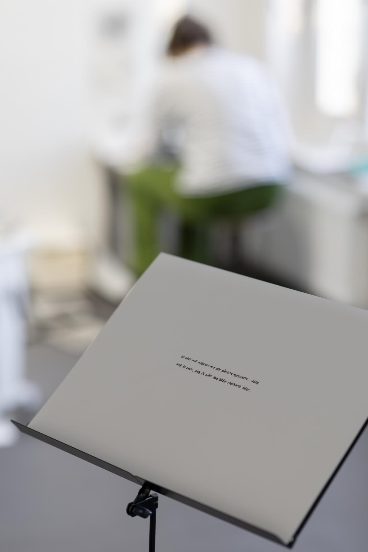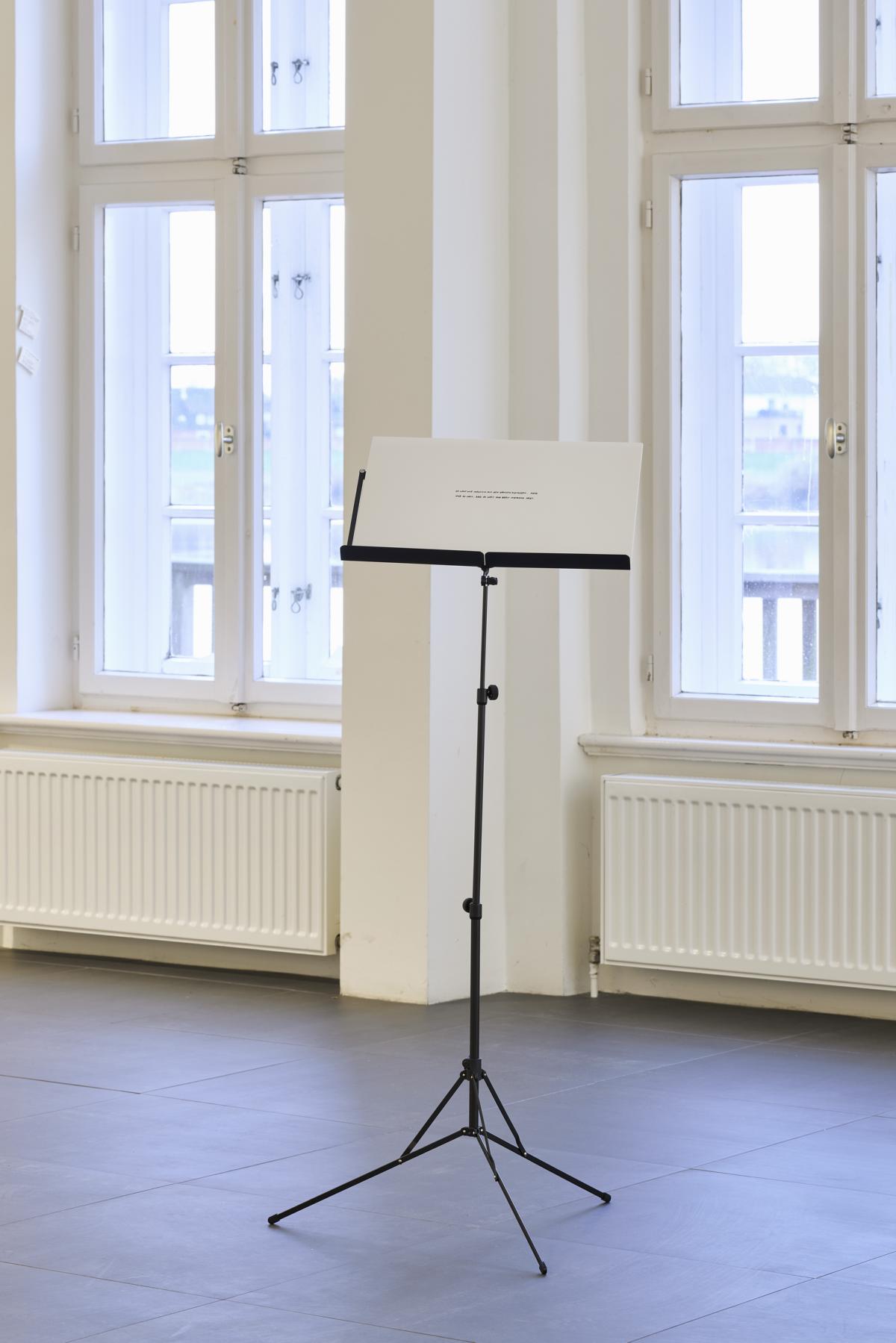 2) Klatschen: eine zweite Choreografie befindet sich im Ausstellungsraum auf einem Notenständer. Sie empfiehlt ein Rundumhören und ein Klatschen, so laut wie möglich – aber nur so laut, dass es weit und breit niemand hört.